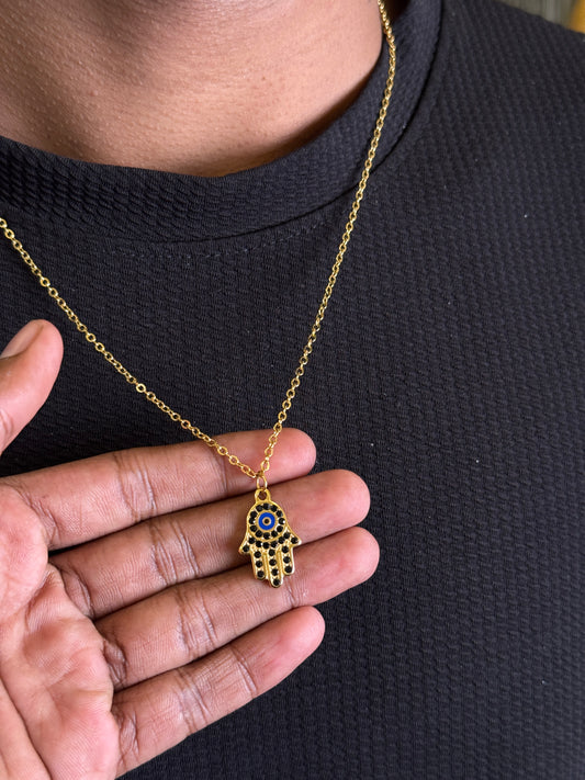 Hamsa hand 18k gold plated stainless steel necklace with white stone embedded