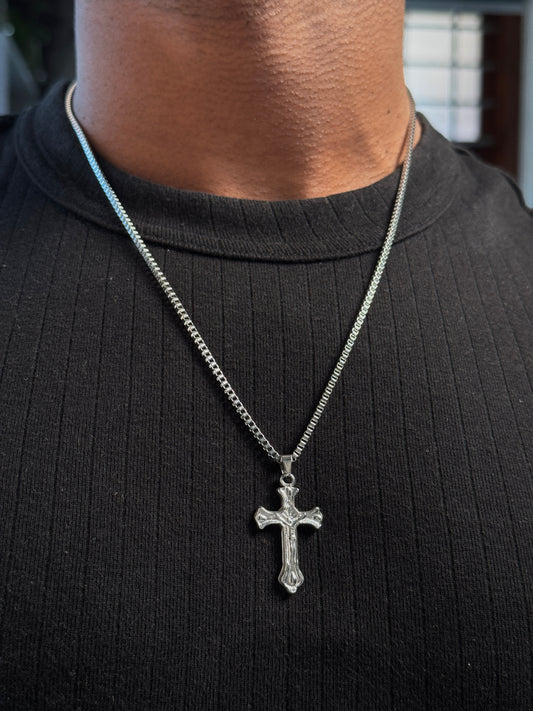 Cross stainless steel medium square box chain necklace