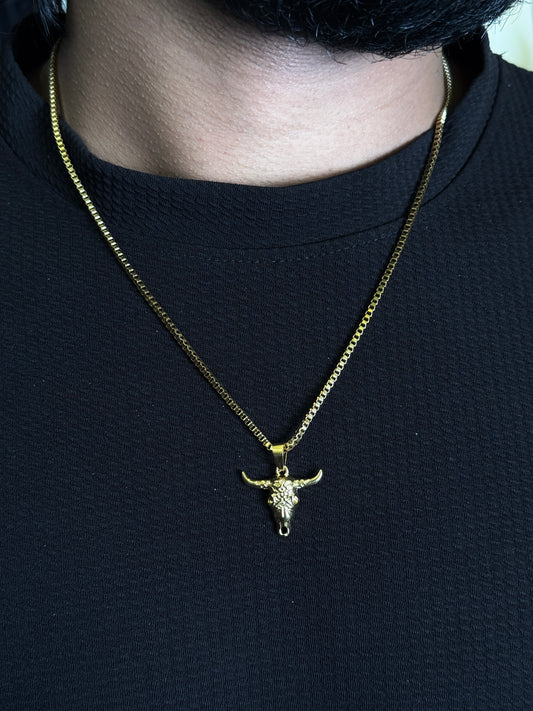 Bull head 18k gold plated stainless steel chain