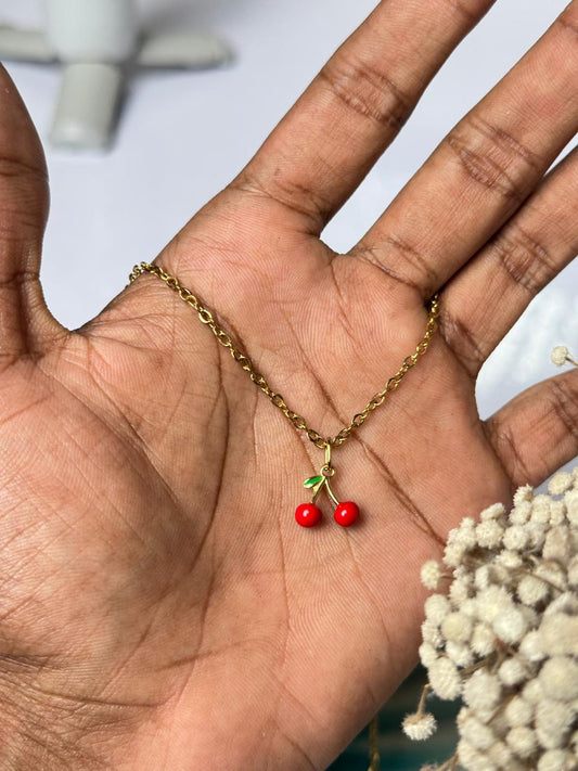 mini twin cherry stainless steel necklace