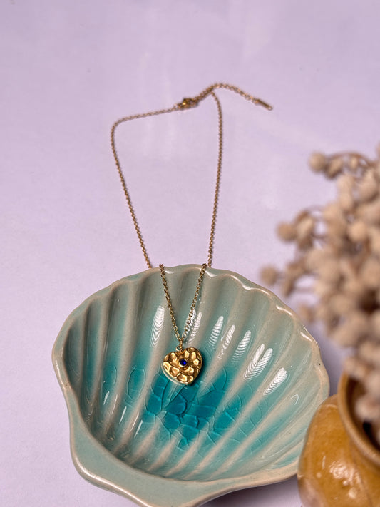 Uneven Love pendant in blue stone 18k gold plated necklace