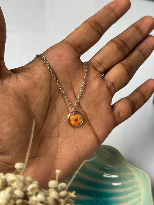 Plum flower orange minimal silver stainless steel necklace