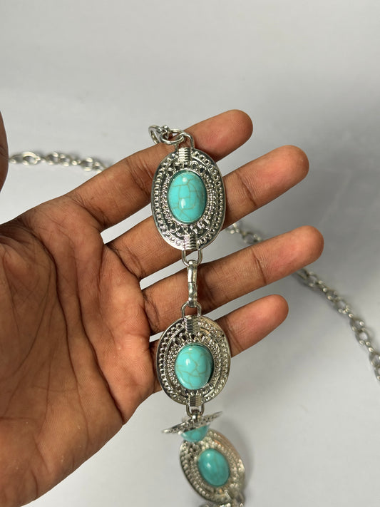 Turquoise silver colour oval type adjustable hip chain