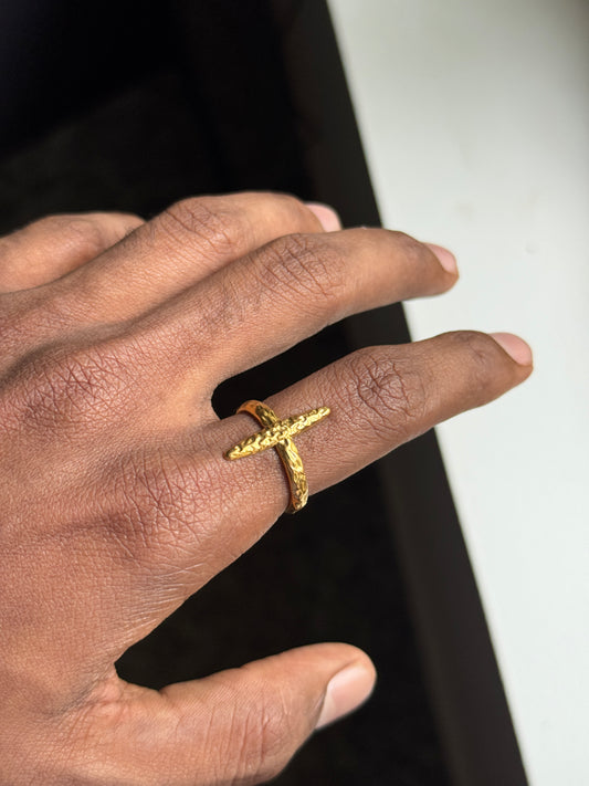 3rd eye thick stainless steel 18k gold plated adjustable ring