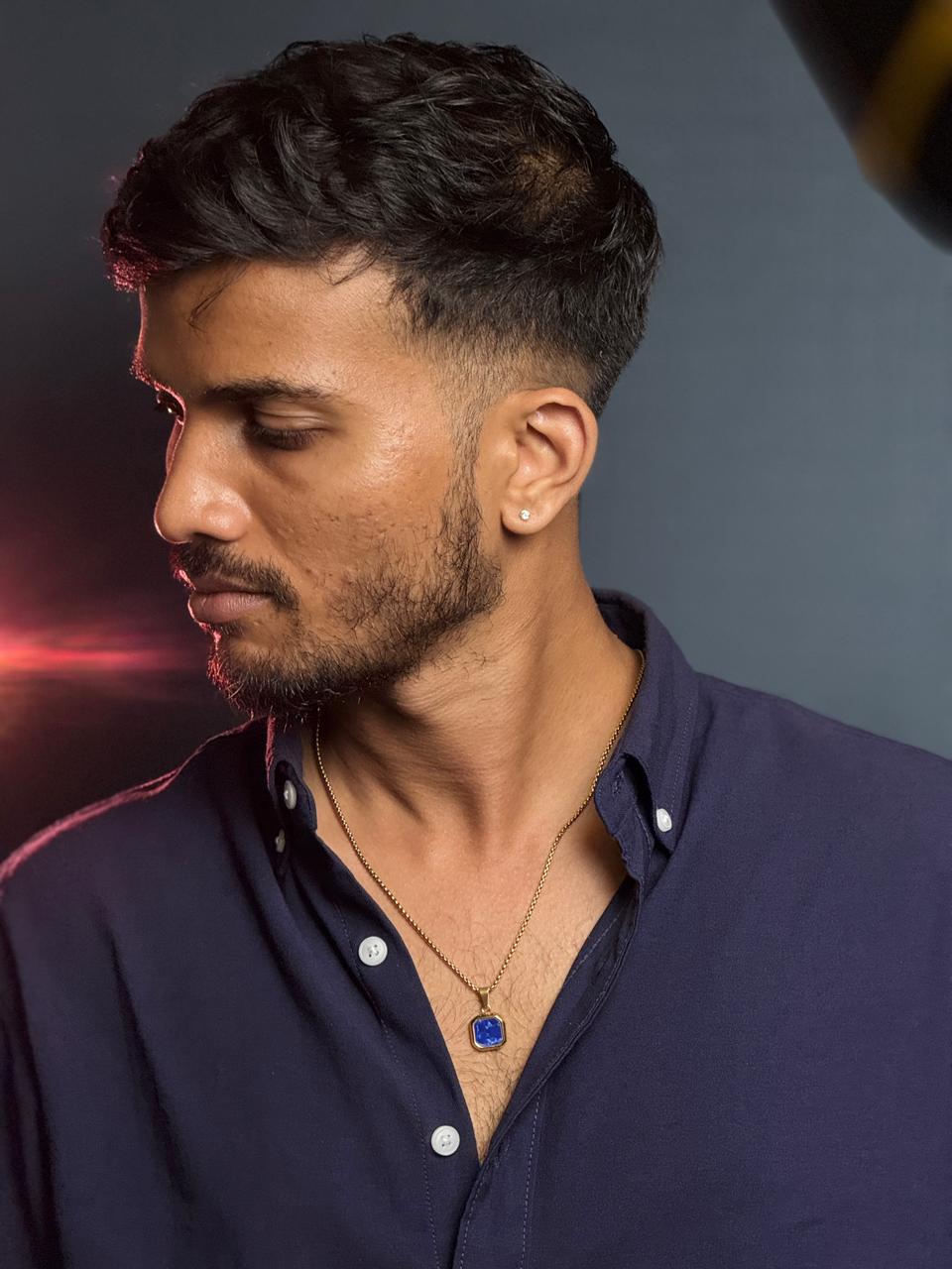 blue square pendant with gold stainless steel 55 cm chain