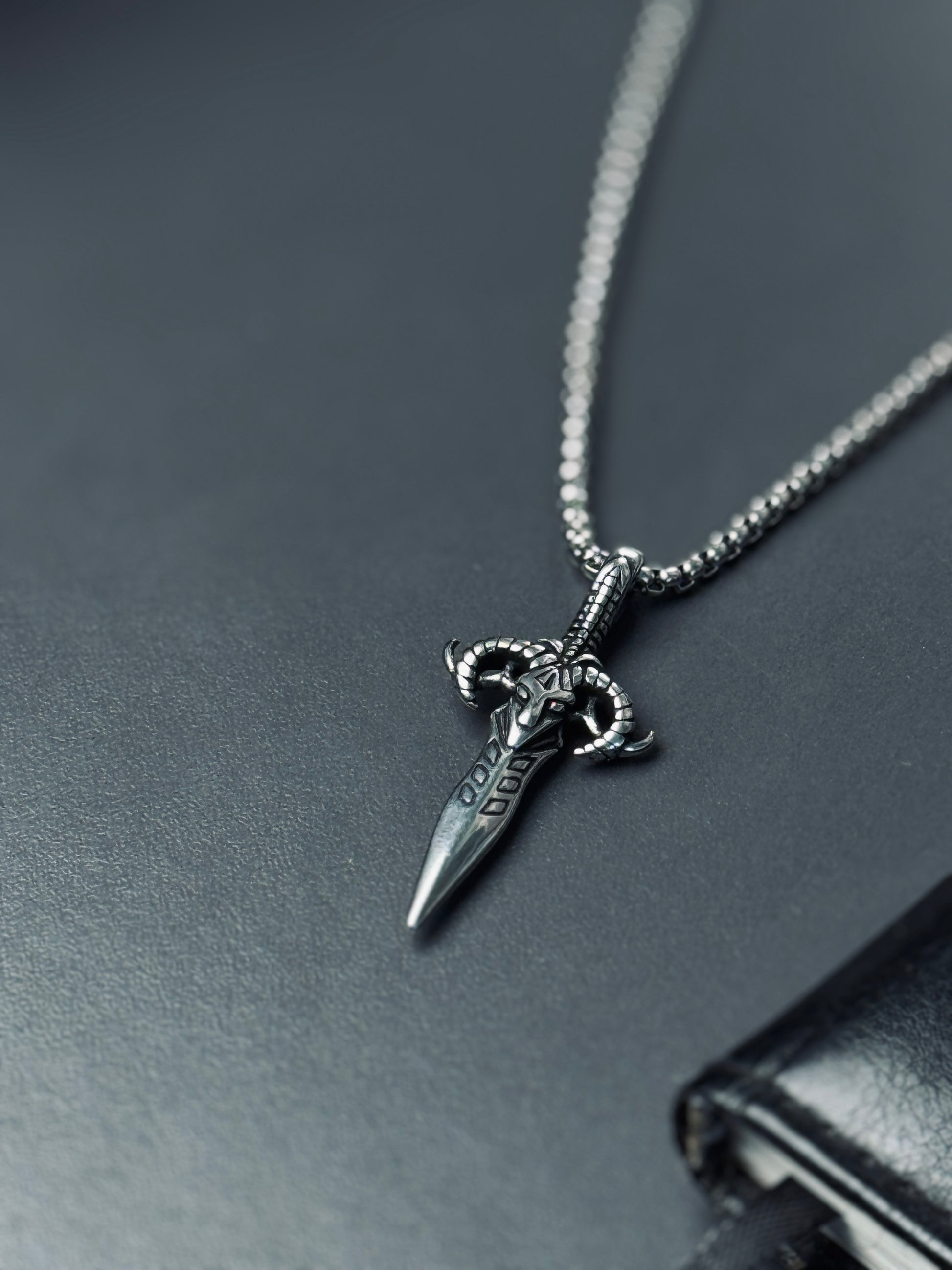 Ram skull dagger silver - stainless steel necklace